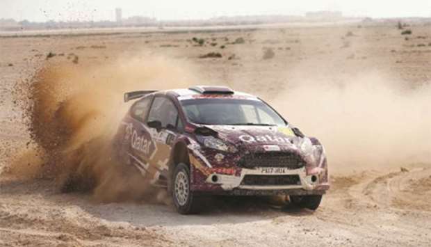Nasser Saleh al-Attiyah powers through the Qatar desert during the Manateq International Rally of Qatar yesterday.