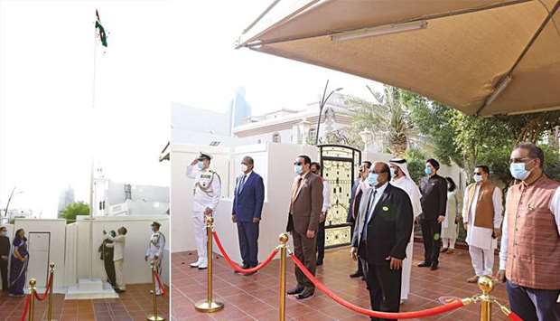 As India marked its 74th Independence Day on Saturday, the Indian embassy in Doha held a special flag-hoisting ceremony marked by patriotic fervour in the presence of a limited number of community leaders and embassy officials.