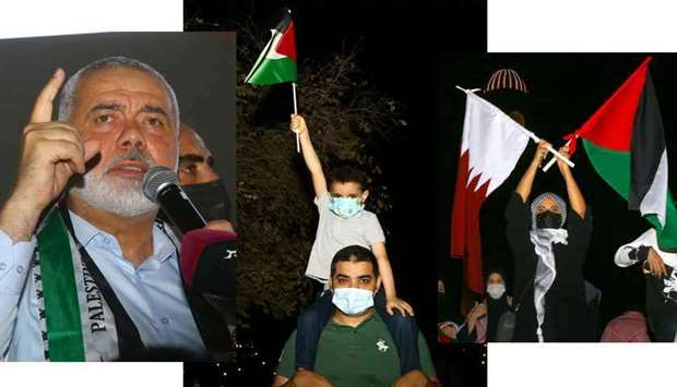 Ismail Haniya, Head of the Political Bureau of Hamas who is currently visiting Doha, addressed the crowd and thanked them for their enthusiasm and keenness to support the cause, assuring them that the resistance is going on and the Palestinian people would not relent until they get all their rights as they are ready to defend the holy land with all they have until it is ultimately liberated.
