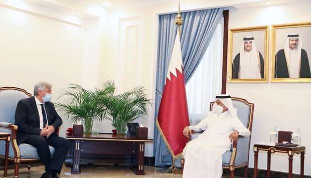 HE the Shura Council Speaker Ahmed bin Abdullah bin Zaid al-Mahmoud met on Tuesday with the President of the France-Qatar Friendship Group in the French National Assembly MP Pascal Brindeau and the accompanying delegation. During the meeting, they reviewed the bilateral relations, and ways to support and develop them, especially in the parliamentary field. HE Mohamed bin Ali al-Maadid, member of the Qatar-France Parliamentary Friendship Group, and Qatar's ambassador to France HE Sheikh Ali bin Jassim al-Thani attended the meeting.