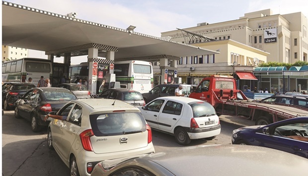 Cars queue for fuel at a gas station in Tunis, yesterday.